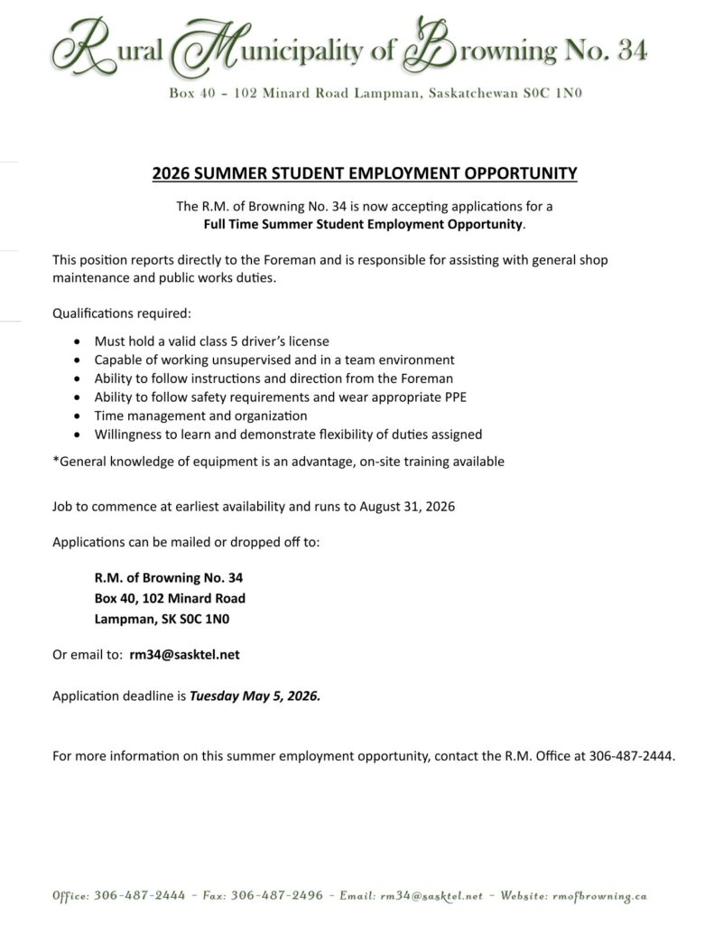 THE RM OF BROWNING OFFICE HAS MOVED!!